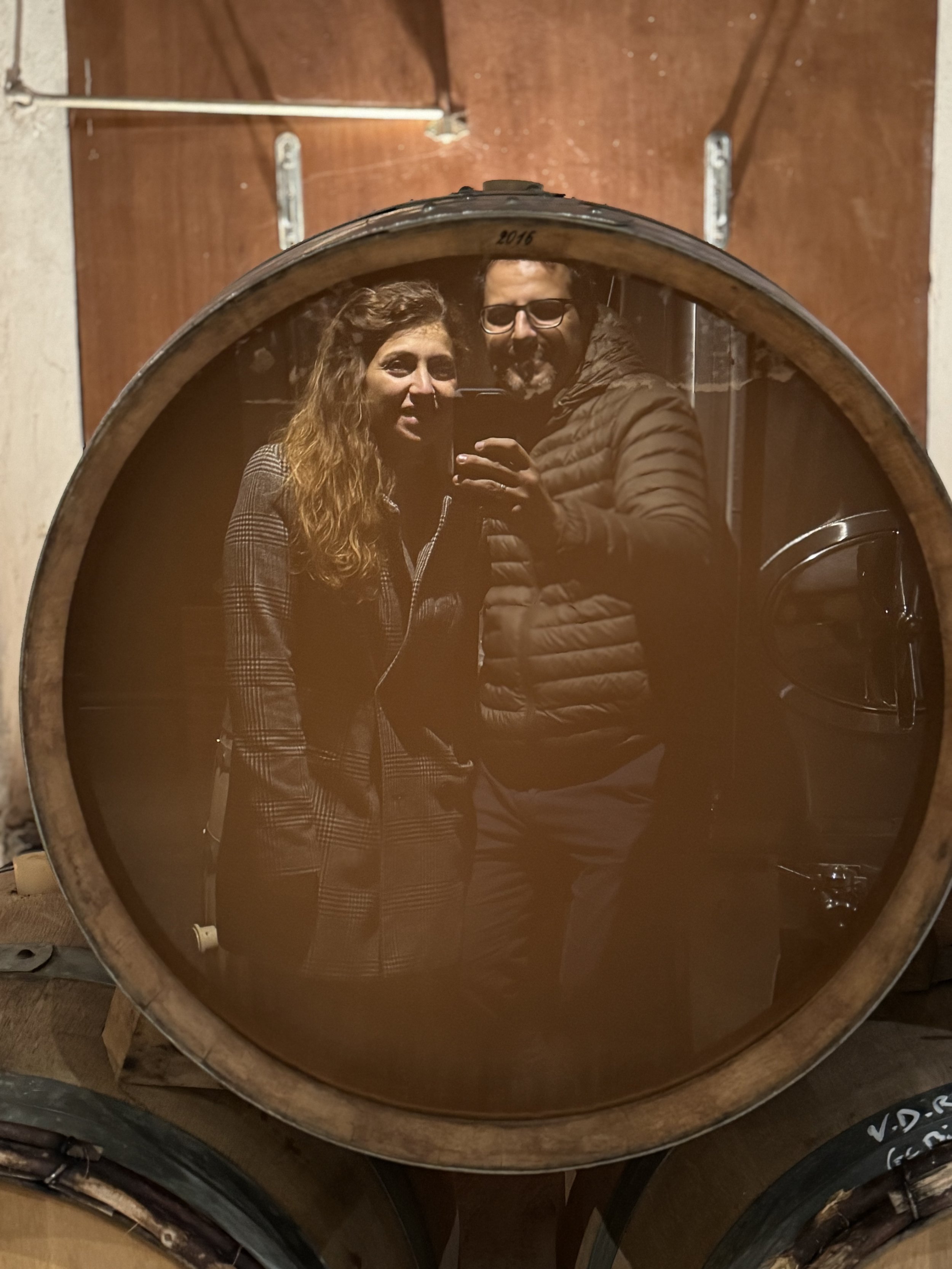 Ci racconta della famiglia di umili origini portoghesi che si trasferisce qui dopo la guerra, facendo fortuna. E che fortuna! Tutto si svolge secondo i canoni di una visita classica. Poi però ci porta in cantina, dove troviamo un omino intento ad attaccare le etichette sulle bottiglie a mano, dopo averle spulciate una ad una con una luce a contrasto per vedere eventualmente difetti. Mi sembra incongruente con tutto quanto vissuto fino a quel momento, in degustazione. Ci introduce alla biodinamica, al loro profondo rispetto verso questa pratica a volte considerata pura “magia”. Ci mostra la stanza dove i vini in fermentazione svolgono il loro processo, gli altoparlanti riproducono Mozart. Stupore. Ci racconta di studi effettuati sulle frequenze che scaturiscono dalla musica di Mozart, uguali (dice), alla frequenza della rotazione della Terra. Ci racconta degli effetti benefici del quarzo che viene lasciato nella stanza a pro dei vini stessi. È tutto così assolutamente evocativo!